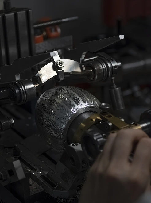 Гильоширование произведено на специально разработанной гильоше-машине, конструкция которой сложнее классических образцов конца XIX и начала XX века, которая при этом обладает несравненной технологической гибкостью и встроенной возможностью гравировать узор гильоше на неплоских поверхностях.