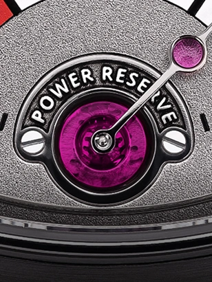 Эксперимент с рубиновыми камнями продолжается и в заводной головке: в неё встроены две рубиновые палеты. Это решение не только эстетическое, но и функциональное — камни позволяют легче отсчитывать обороты при заводе.